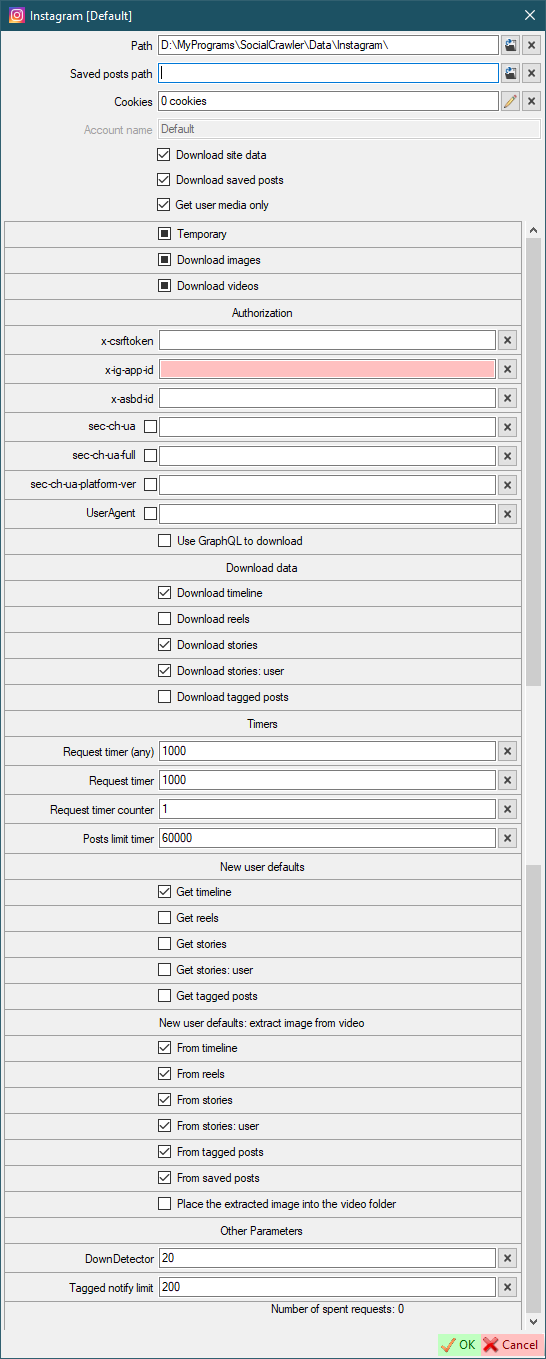 Instagram: add options to enable/disable image extraction from video OnlyFans: update to the changed API YouTube: videos are parsed from the 'featured', not from the 'videos' page Feed: add prompt before moving entire feed/session MainFrame: add 'Alt+U' and 'Ctrl+U' to open the user search form UserImage: user image creation update