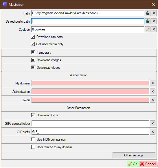 Plugins IPluginContentProvider: added DownloadSingleObject function; added tokens to GetMedia and Download functions; removed GetSpecialData function Add IDownloadableMedia interface Removed 'Channel' option from all functions and enums ISiteSettings: added GetSingleMediaInstance function ExchangeOptions: removed 'IsChannel' UserMediaTypes: added Audio and AudioPre enums IUserMedia, PluginUserMedia: changed ContentType and DownloadState from integers to their enums SCrawler Add YouTube standalone downloader Add gallery-dl & yt-dlp support Remove 'UserInfo' requirement from 'ProfilesSaved' Update 'SiteSettingsBase' to use domains and Netscape cookies UserDataBase: remove channels; remove old 'Merge' const; standardize SavedPosts file naming; move 'ValidateMD5' function from Twitter to UserDataBase to use it in other UserData classes; add 'DownloadSingleObject' environment for single posts; add validating file extension for m3u8 during download; add reindex of video file during download Rewritten DomainsContainer Create a universal settings form and PSettingsArttribute Gfycat, Imgur: turn these classes into IUserData to download a single object All plugins: update 'GetInstance' function for saved posts; update domains where implemented; remove 'OptionForm' where it exists; update options where they exist; update unix date providers; reconfigure channels where they exist LPSG: fix attachments; update converters and regex Add sites: ThisVid, Mastodon, Pinterest, YouTube, YouTube music Reddit: standardize container parsing for all data types; new channel environment; fix 'ReparseMissing' function; redirect data downloading to the base download function, saved crossposts support Twitter: fixed gif path bug; fixed downloading saved posts PornHub: hide unnecessary errors; photo galleries bug RedGifs: add 'UserAgent' option Added icons to download progress Rename some objects Completely redesigned standalone downloader form and rewritten its environment WebClient2: update to use tokens Labels: update label form (save labels to file only when OK button is clicked); change removing labels.txt from recycle bin to permanent; disable storing label 'NoParsedUser' UserCreatorForm: remove the 'Channel' checkbox and related functions; ability to extract the user's URL from the buffer and apply parameters if found Remove temporary 'EncryptCookies' module MainFrame: added simplified way to create new users (Ctrl+Insert to create a new user with default parameters from clipboard URL); removed SCrawler command line argument "-v" (remove the ability to run SCrawler as video downloader) PropertyValueHost: update for option forms compatibility SettingsHost: removed 'GetSpecialData' fork; added 'GetSingleMediaInstance' fork UserDataHost: update functions with tokens; update events; add 'DownloadSingleObject' function Settings: add the ability to get environment from 4 destinations; add the ability to set the program environment manually; add CMDEncoding; add cache; remove the old function 'RemoveUnusedPlugins'; add 'STDownloader' properties; add YT compatibility; add new notification options; add deleting user settings file when 'SettingsCLS.Dispose()' if where are no users in SCrawler UserFinder: remove old 'Merge' const; remove channel option UserInfo: remove channel option