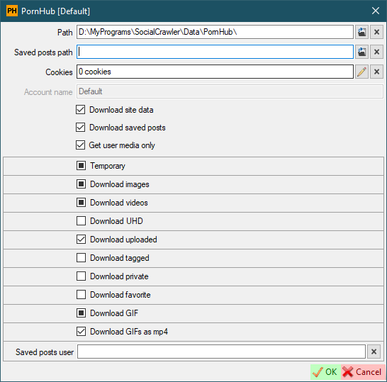 PluginProvider IPluginContentProvider: add 'NameTrue' property YT YouTubeSettings: remove the 'CreateDescriptionFiles_AddUploadDate' property PlayListParserForm: add 'RDAMP' as default value when initializing form YouTubeMediaContainerBase: fix line breaks SCrawler API.Base: add 'EditorExchangeOptionsBase' class API.Base.GDL: move functions to Pinterest.UserData API.Base.IUserData: add 'NameTrue' property API.Base.SiteSettingsBase: update the 'GetUserUrl' function to use the 'NameTrue' property; update 'UserOptions' function API.Base.UserDataBase: add 'NameTrue' property; add 'SimpleDownloadAvatar' function to get rid of the same functions of other classes; Update 'UserDescriptionUpdate' function API.Base.InternalSettingsForm: calculate max offset ADD API.Bluesky API.Facebook: add 'Reels' downloads; fix video downloading API.Instagram: add inheritance 'EditorExchangeOptionsBase'; remove 'GetUserUrl' function from 'SiteSettings'; update 'UserData' class to new environment; add saving 'heic' file along with 'jpg' API.LPSG.UserData: simplify 403 error API.Mastodon: update classes to new environment API.OnlyFans: add 'AppTokenDefault'; disable cookies update; update 'UserData' class to new environment API.Pinterest: add sub-boards downloading; update download functions API.PornHub: fix photo & video downloading; remove 'ModelHub' support API.Reddit: fix token update; update 'UserData' class to new environment API.ThisVid: update 'UserData' class to new environment API.ThreadsNet: fix data download; update classes to new environment; fix 'UserID' extraction; add the ability to manually change the UserName API.TikTok: update classes to new environment API.Twitter: update classes to new environment; add sleep timers to fully download large profiles; add 'CookiesUpdate' hidden property API.Xhamster: update classes to new environment API.XVIDEOS: update classes to new environment Feed: add the ability to invert selection; open post URL when double-clicking on subscription image FeedSpecialCollection: update 'FeedsComparer' GlobalSettingsForm: remove 'UserAgent' from the 'Basis' tab UserDataHost: update class to new environment SettingsCLS: set the 'UserSiteNameAsFriendly' property to 'True' by default; disable 'DownDetector'; add 'UsersListProtected' property