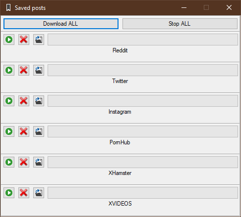 Add sites: PornHub, XHamster Add saved xvideos posts downloading PluginProvider: added TaskGroup attribute; added IUserMedia inteface; changed PluginUserMedia to IUserMedia in interface declarations; changed 'User' String to IPluginContentProvider in ISiteSettings sinterface Added update the 'LOG' button at the end of the ProfileSaved download function API.Base: added 'IUserMedia' compatibility for 'UserMedia'; moved 'GetImage' from 'UserPost' to 'ChannelsViewForm'; update constants in UserDataBase; updated UserDataBase to new UserInfo environment. API.Instagram.UserData: fixed date issue API.Reddit.SiteSettings: update user patterns API.Twitter.Declarations: moved provider here from MainFrame UserDataBind: updated to new UserInfo environment ActiveDownloadingProgress: updated form rendering AutoDownloader: added SpecialDelay TDownloader: added 'Suspended' option; updated for TaskGroups CollectionEditorForm: fixed order bug LabelsForm: remove old stuff UserEditorForm: added collection editing MainFrame: improve label selection Add import users Added the ability to create a virtual collection and add a virtual user to a real collection SettingsCLS: improve users loading