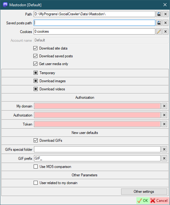 YT YouTubeSettings: add 'DefaultVideoHighlightFPS_H' and 'DefaultVideoHighlightFPS_L' properties VideoOption: highlight frame rates higher/lower than this value SCrawler SiteSettingsBase: add 'UserAgentDefault' property API.Facebook, API.Instagram, API.Mastodon, API.OnlyFans, API.ThreadsNet, API.Twitter: add categories API.Instagram.SiteSettings: add 'DownDetector' validation; remove wrong header API.Instagram.UserData: fix incorrect definition of pinned posts; add 'DefaultParser_Pinned' and 'DefaultParser_SkipPost' func (for Threads) API.Threads: fix pinned posts processing API.Reddit: add 429 bypass; change the naming method of video files (hosted on Reddit) to the 'YYYYMMDD_HHMMSS' pattern; add 'UserAgent' property API.RedGifs: hide credential controls API.Twitter: add 'Likes' downloading; change domain from twitter.com to x.com; API.OnlyFans: set '_AllowUserAgentUpdate' to false SiteEditorForm: group options by category GroupListForm: enable 'OK' if it is filter DownloadGroup: add 'FilterShowAllUsers' property PropertyValueHost: add 'Category' property MainFrame: the 'ALL' filter isn't unchecked when loading a filter from a saved one Update user paths when global paths change Scheduler: add the ability to clone the scheduler PluginProvider PropertyOption attribute: set category name when `IsAuth = True` ISiteSettings: add 'UserAgentDefault' property